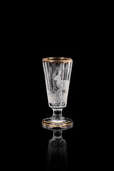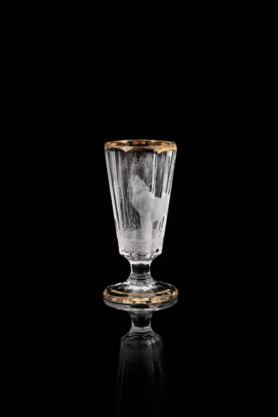 Хрусталь, ручная матовая гравировка, роспись платиной или золотом.