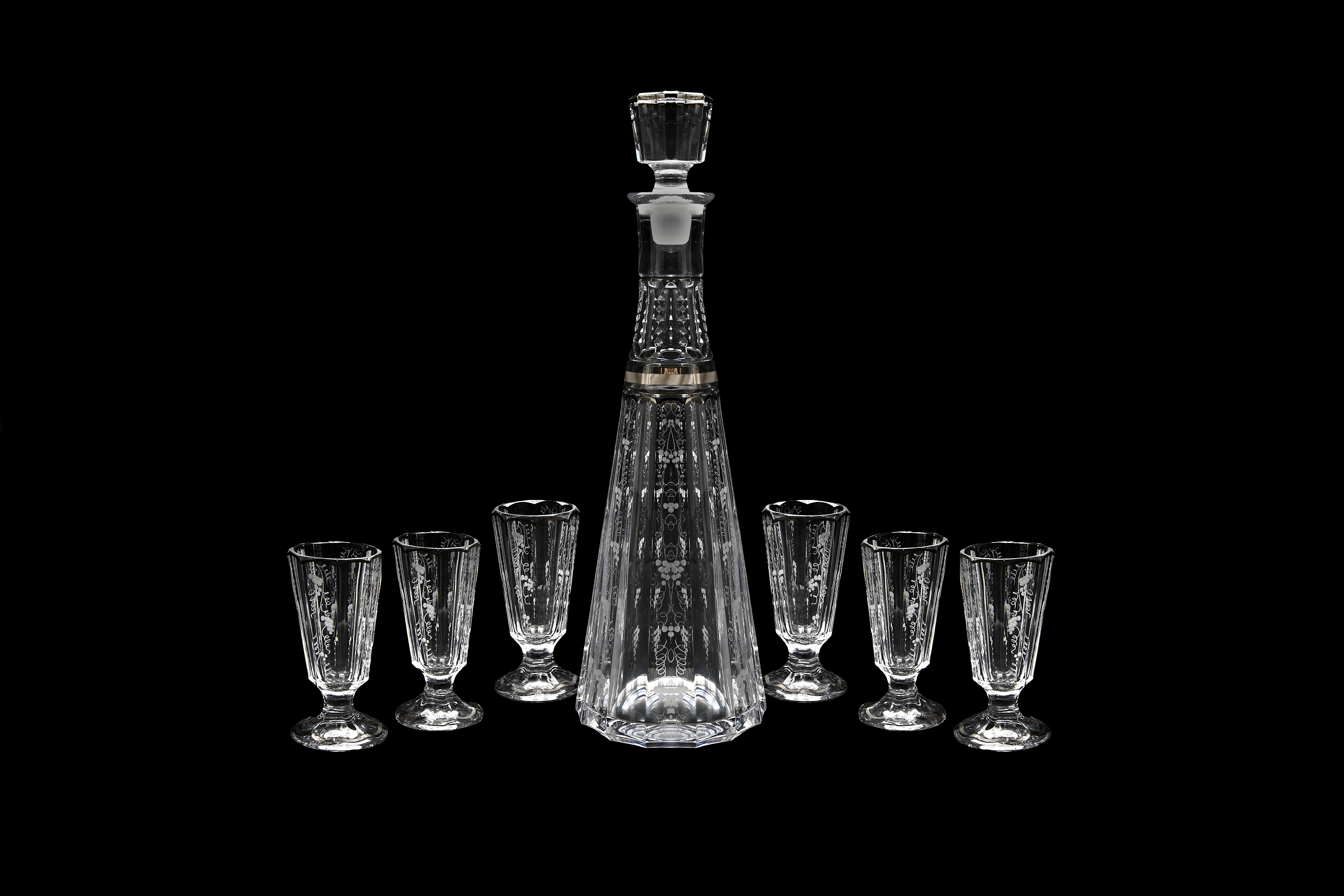 Хрусталь ручной работы, гравировка в виде лозы, роспись золотом или платиной